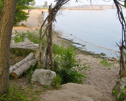 On trouve souvent sur Bluffer’s Beach Park des morceaux de bois échoués sur la grève et il arrive que des visiteurs se lancent dans la construction de petites cabanes de fortune. C’est mon endroit préféré à l’automne, pour jouir des arbres colorés et de l’eau scintillante.