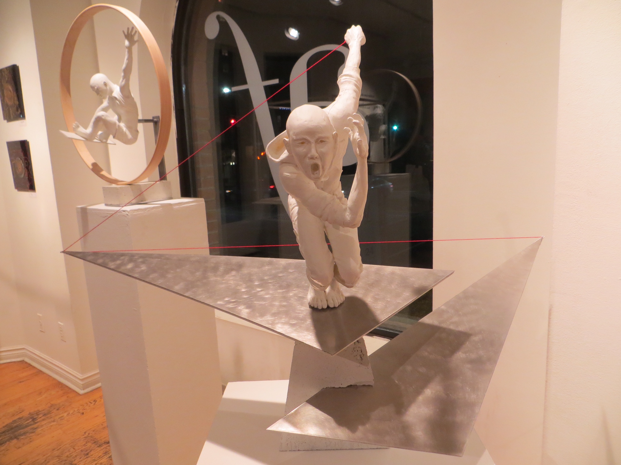 Ces sculptures ont une forte présence, où les formes sont toujours dans une dynamique à la fois avec le public, mais aussi par rapport à l’espace qu’elles occupent. La série exposée à l’AFT a pour titre Architecture du corps et de l’espace bâti: impressions, sensations et expression.