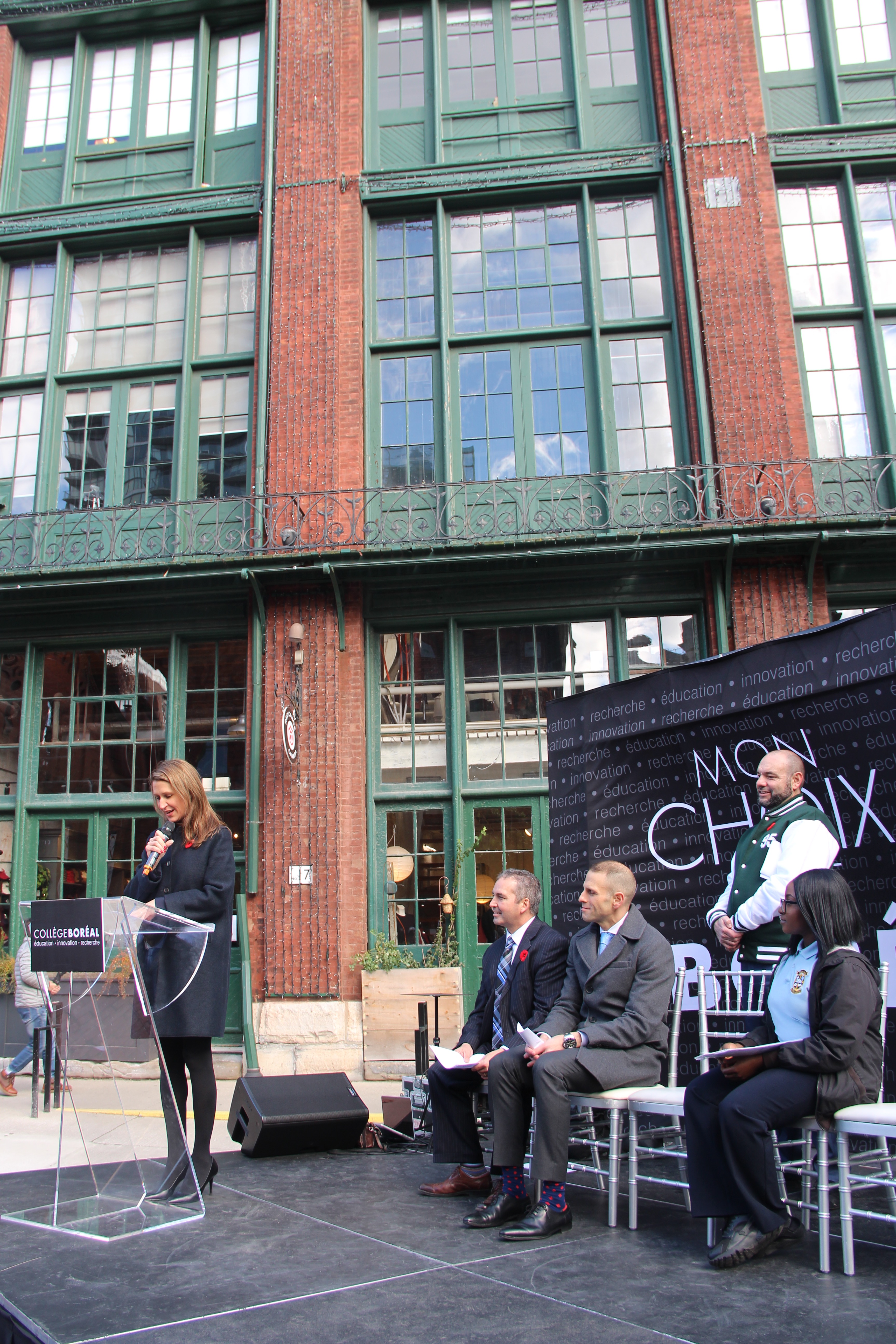 La ministre des Affaires francophones de l’Ontario, Caroline Mulroney, participait lundi matin au dévoilement du site et lancement officiel de la construction, en compagnie des dirigeants du Collège et d’une foule d’invités sur la place centrale de la Distillerie, puis dans la galerie Thompson Landry.