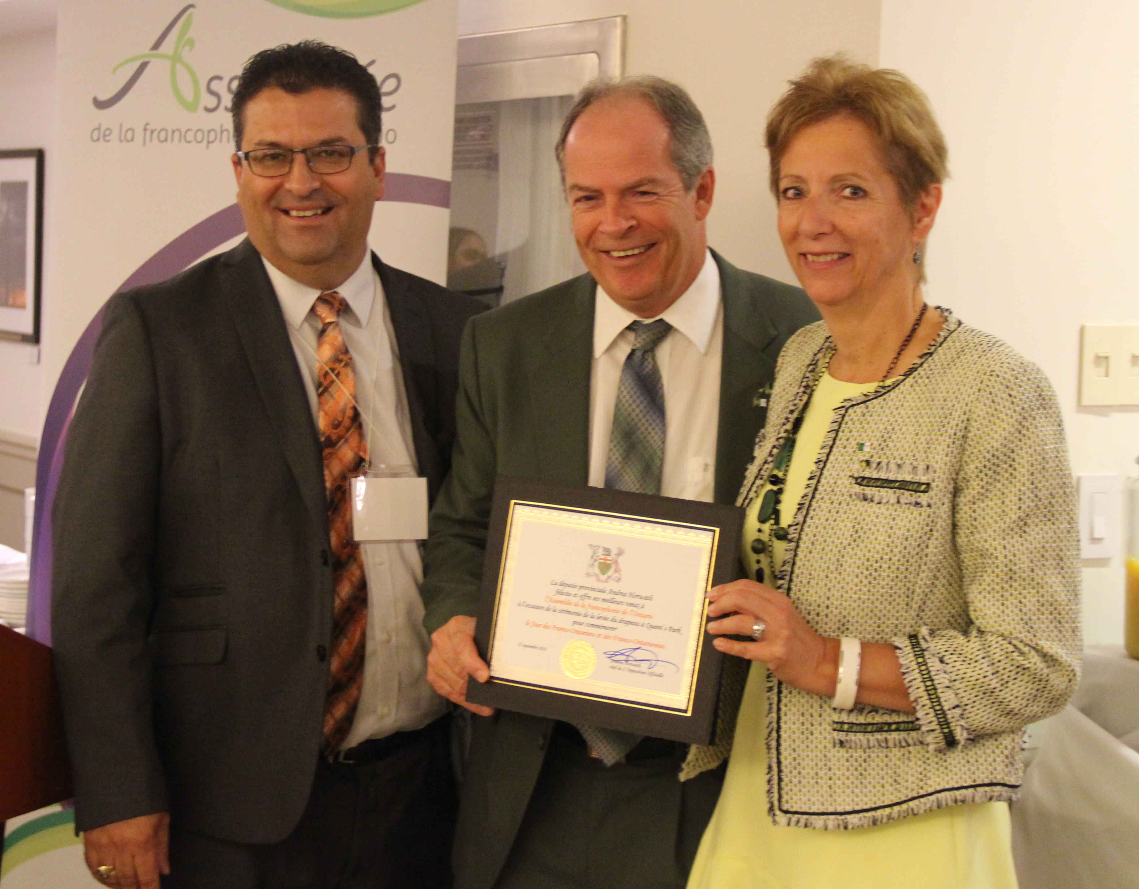 Le président Carol Jolin leur a souhaité «un superbe Jour des Franco-Ontariens et des Franco-Ontariennes», même s’il pleuvait, et s’est réjoui que plusieurs des nouveaux élus à Queen’s Park, le 7 juin dernier, soient francophones ou puissent s’exprimer en français.