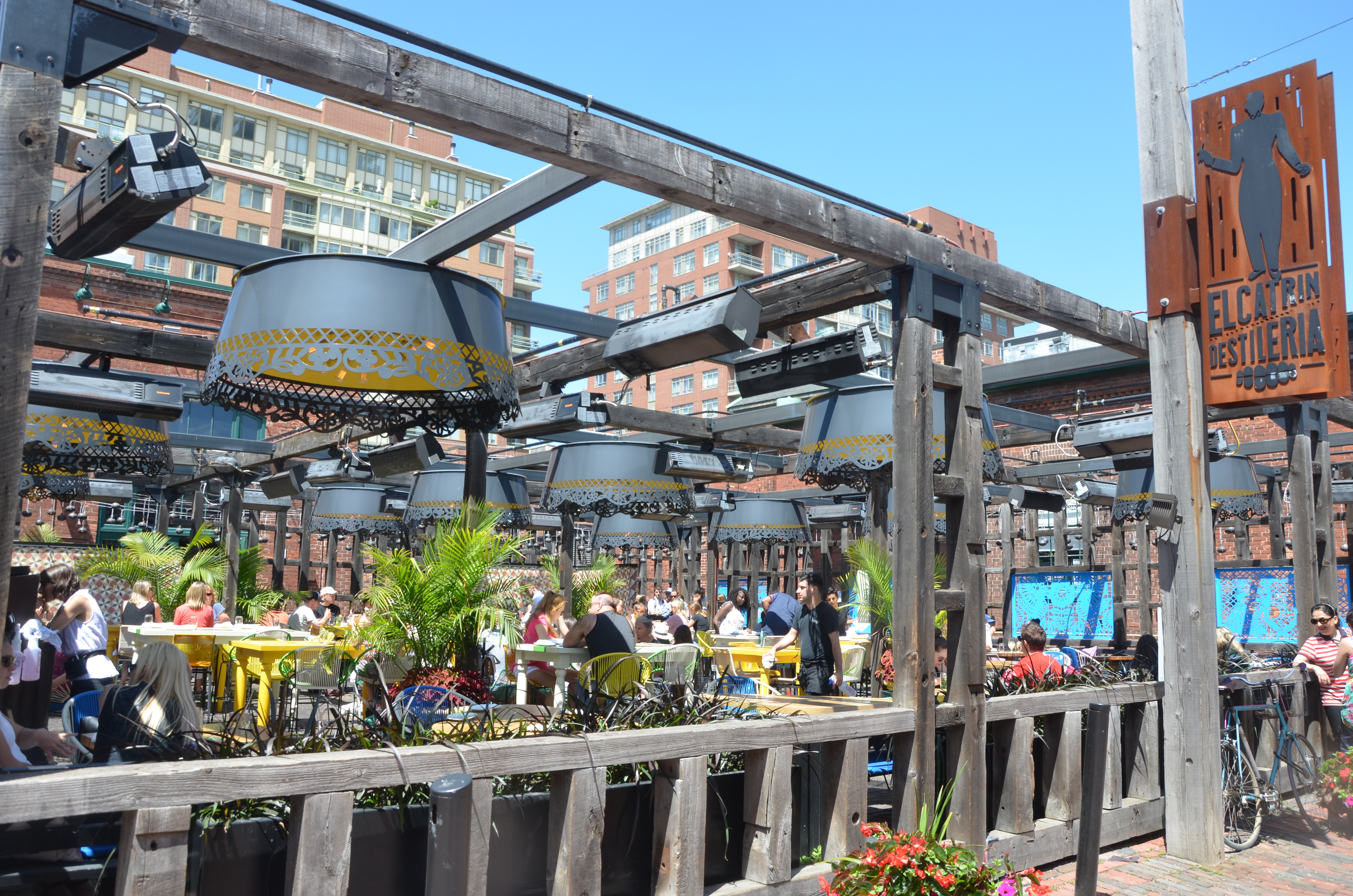 Plus animé, nous avons un peu plus loin Elcatrin Destileria. Les effluves de tequila et la musique latino vous guideront sur la terrasse colorée de ce restaurant mexicain à la mode.
