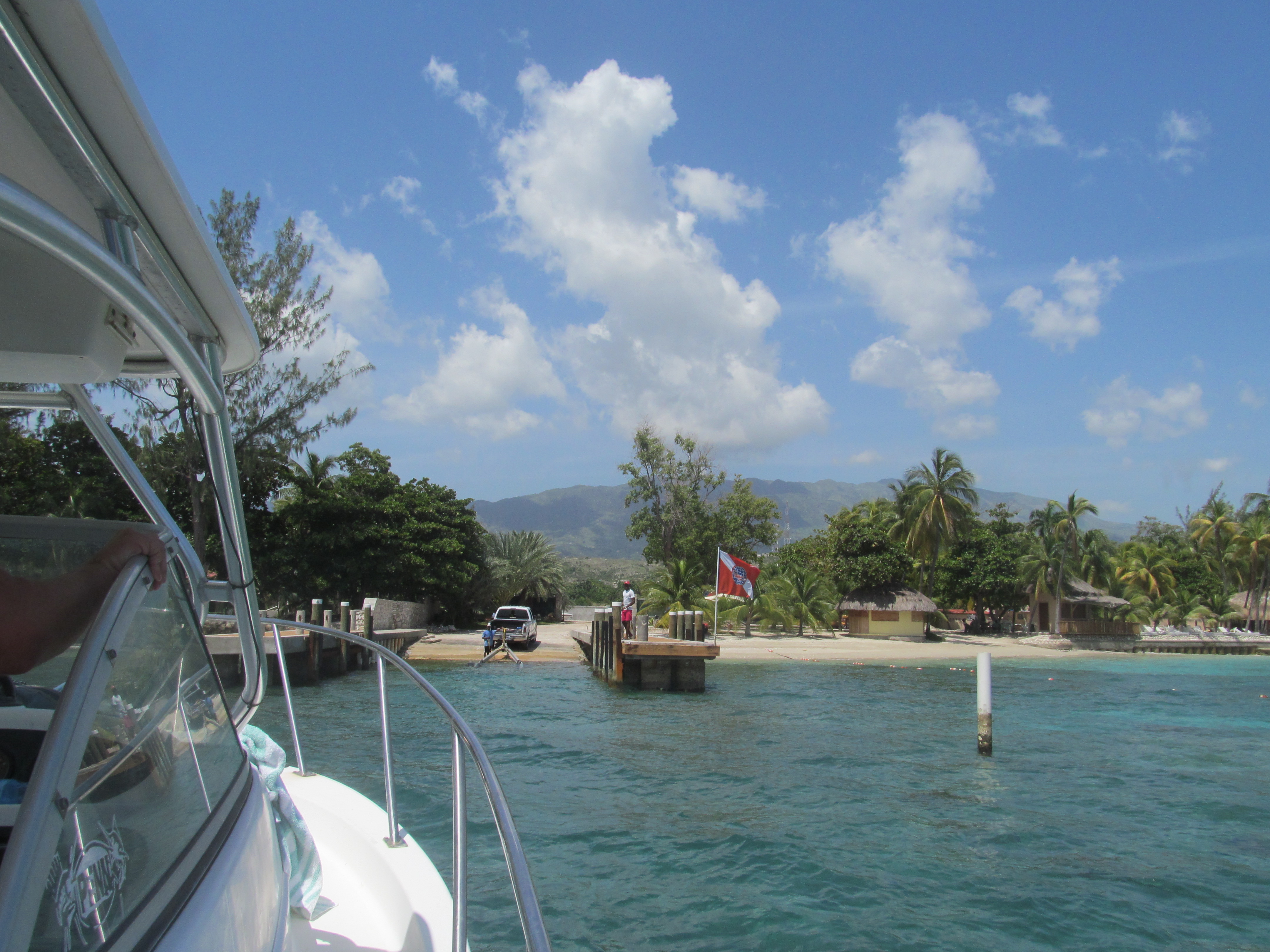 Tôt le matin, on est parti vers le quai du complexe hôtelier Moulin Sur Mer, logé sur la Côte des Arcadins à une heure de route de Port-au-Prince. La station balnéaire de la Côte des Arcadins n’a pas été affectée par le récent ouragan Matthew, ni la capitale d’Haïti.