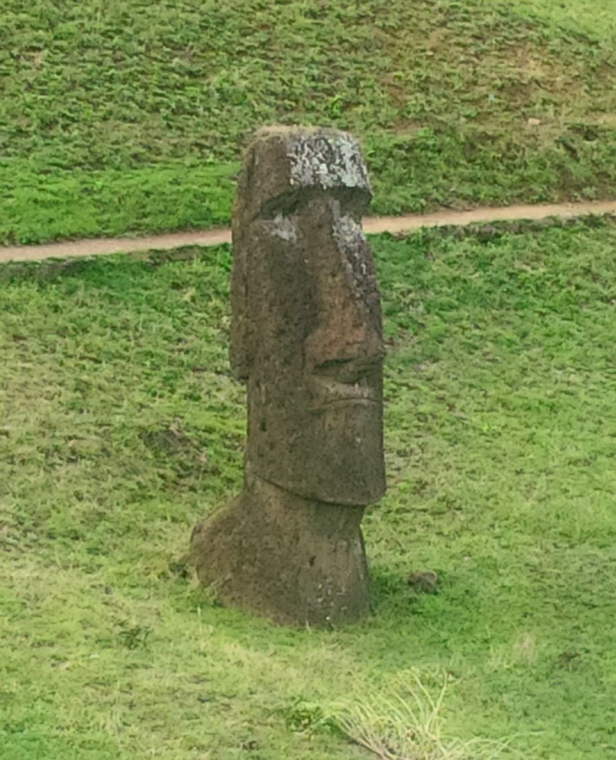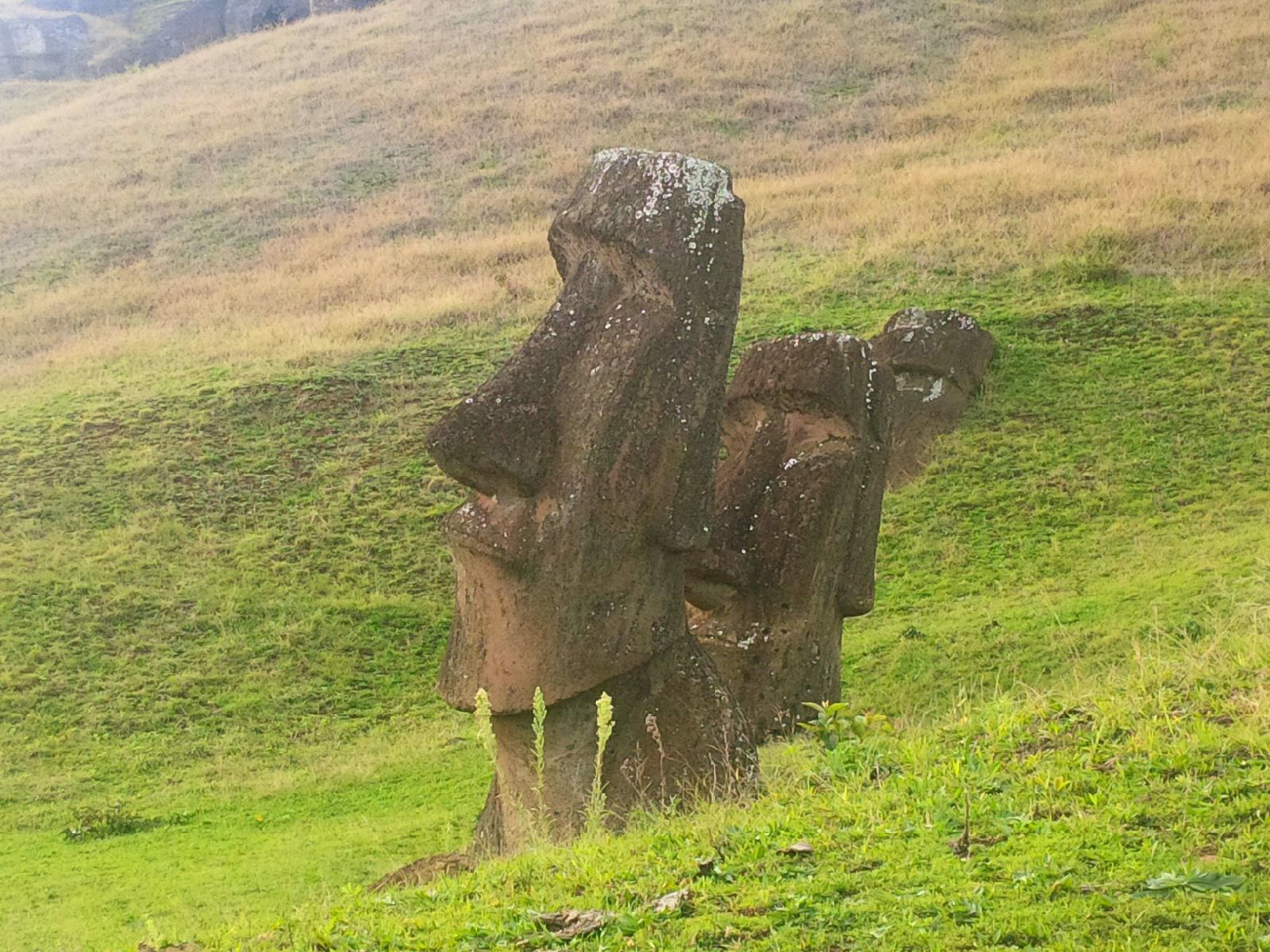 Tavi m’a expliqué que ces statues à la tête surdimensionnée ont été sculptées ici dans le tuf volcanique, puis transportées et érigées dos à la mer, face au village où vivaient de preux guerriers ou des seigneurs, en leur honneur. Pour accompagner leur âme et protéger les leurs.
