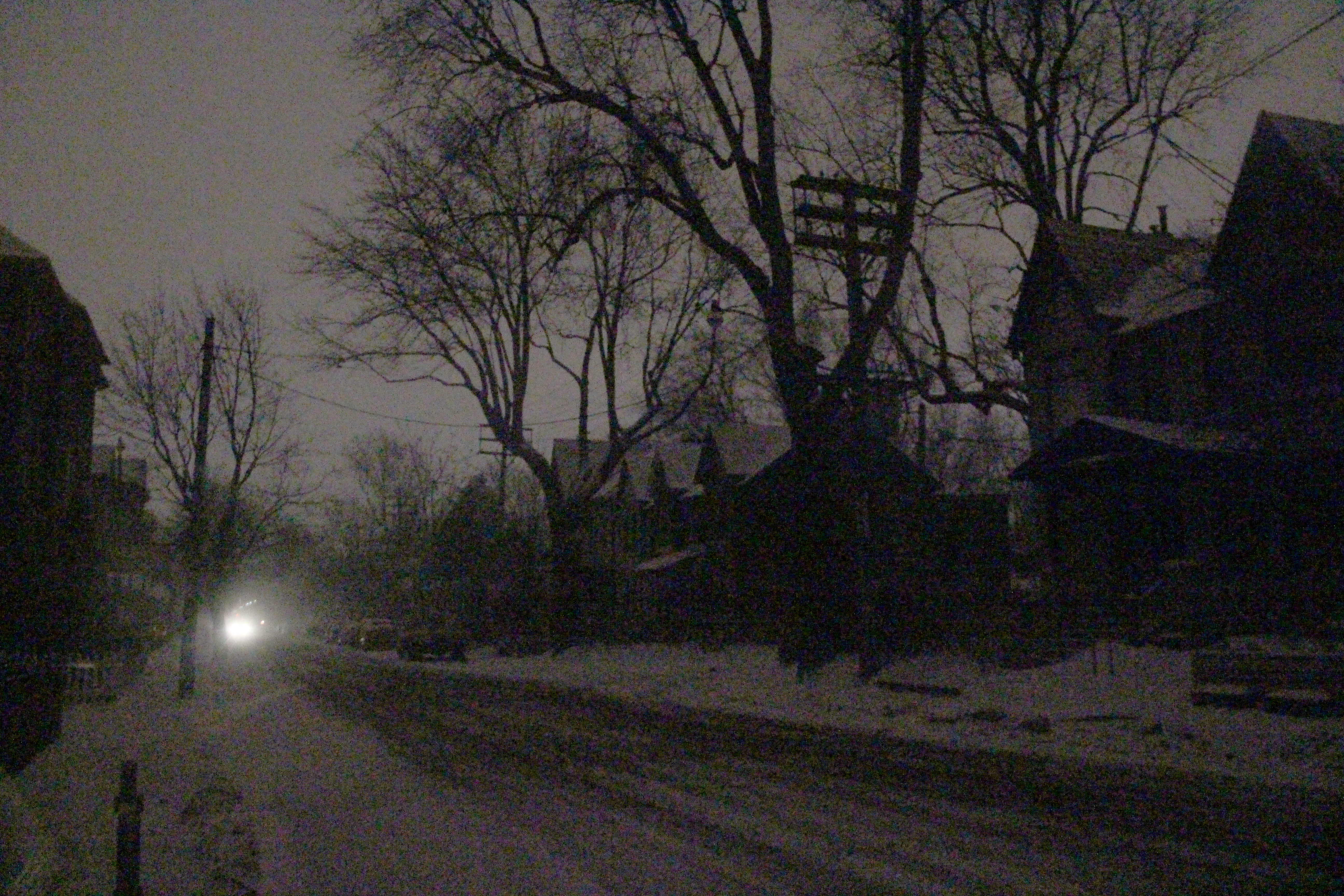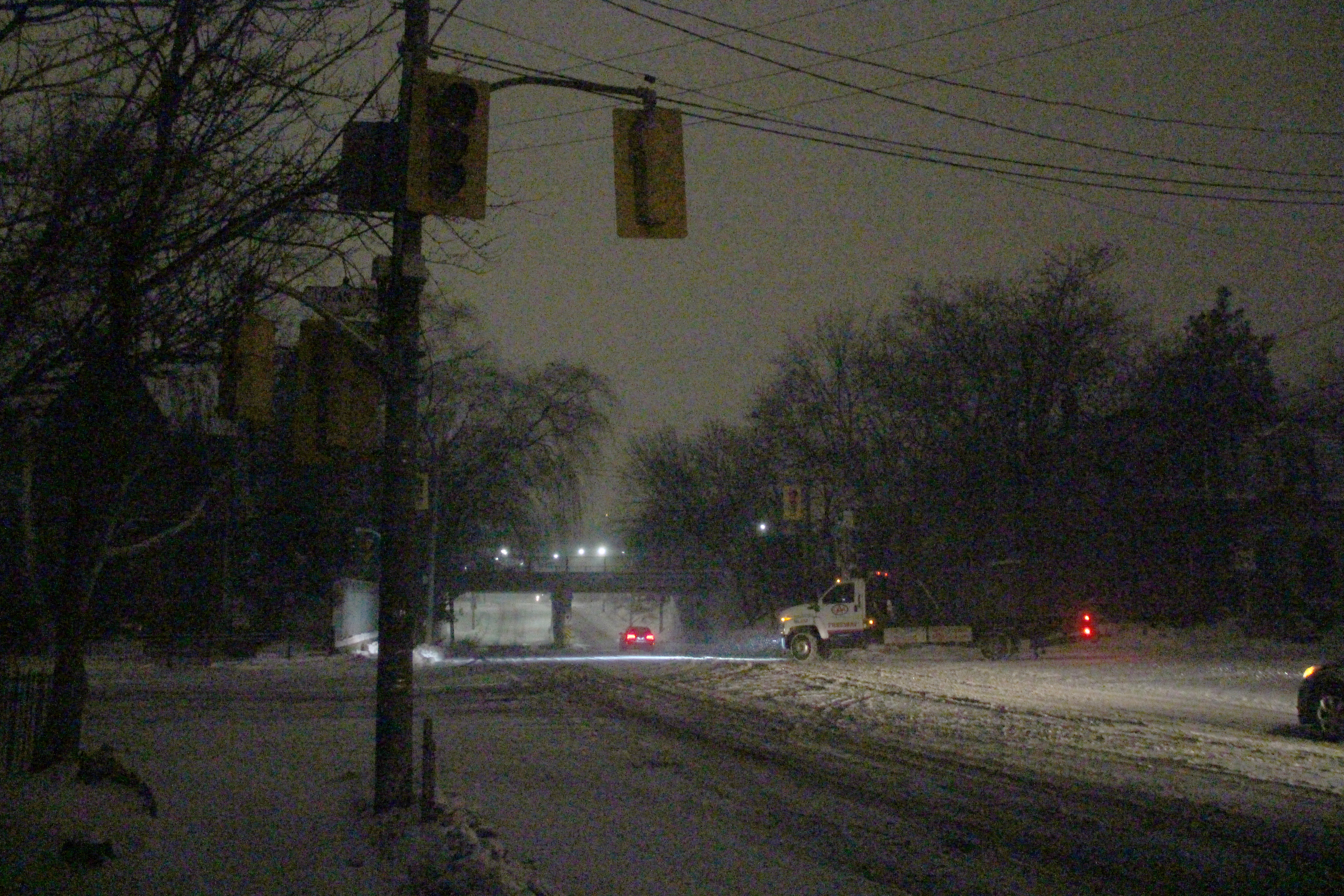 Ce sont les véhicules qui fournissaient la lumière lundi matin dans l'Est de Toronto. (Photos: Nathalie Prézeau)