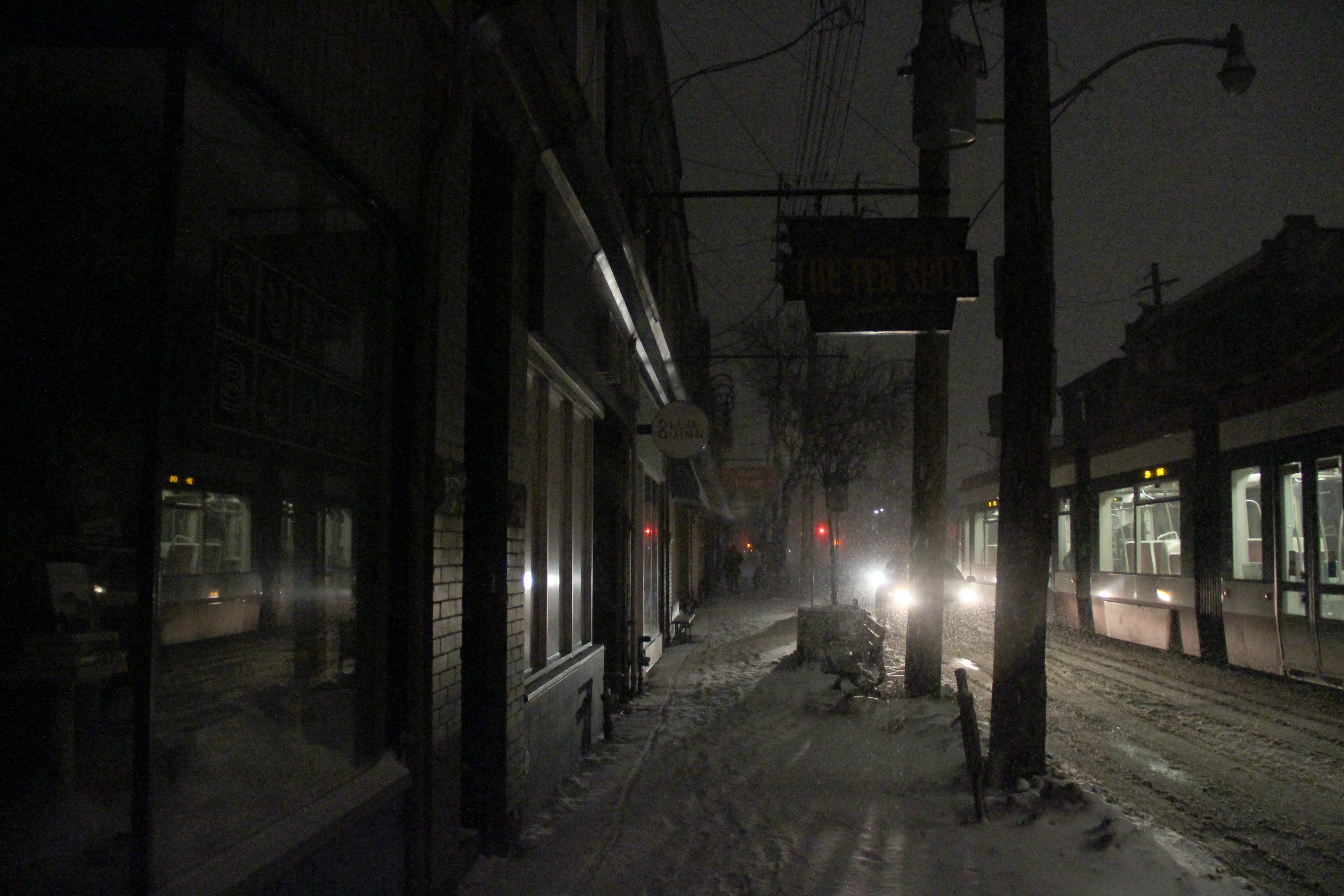 Une panne d’électricité, de cause encore indéterminée, a affecté le secteur Est de Toronto, de la rue Yonge à Victoria Park au Sud d’Eglinton jusqu’au bord du lac, entre 5h et 7h30 ce lundi matin 8 janvier. Voici quelques photos de Nathalie Prézeau prises dans le quartier Leslieville.