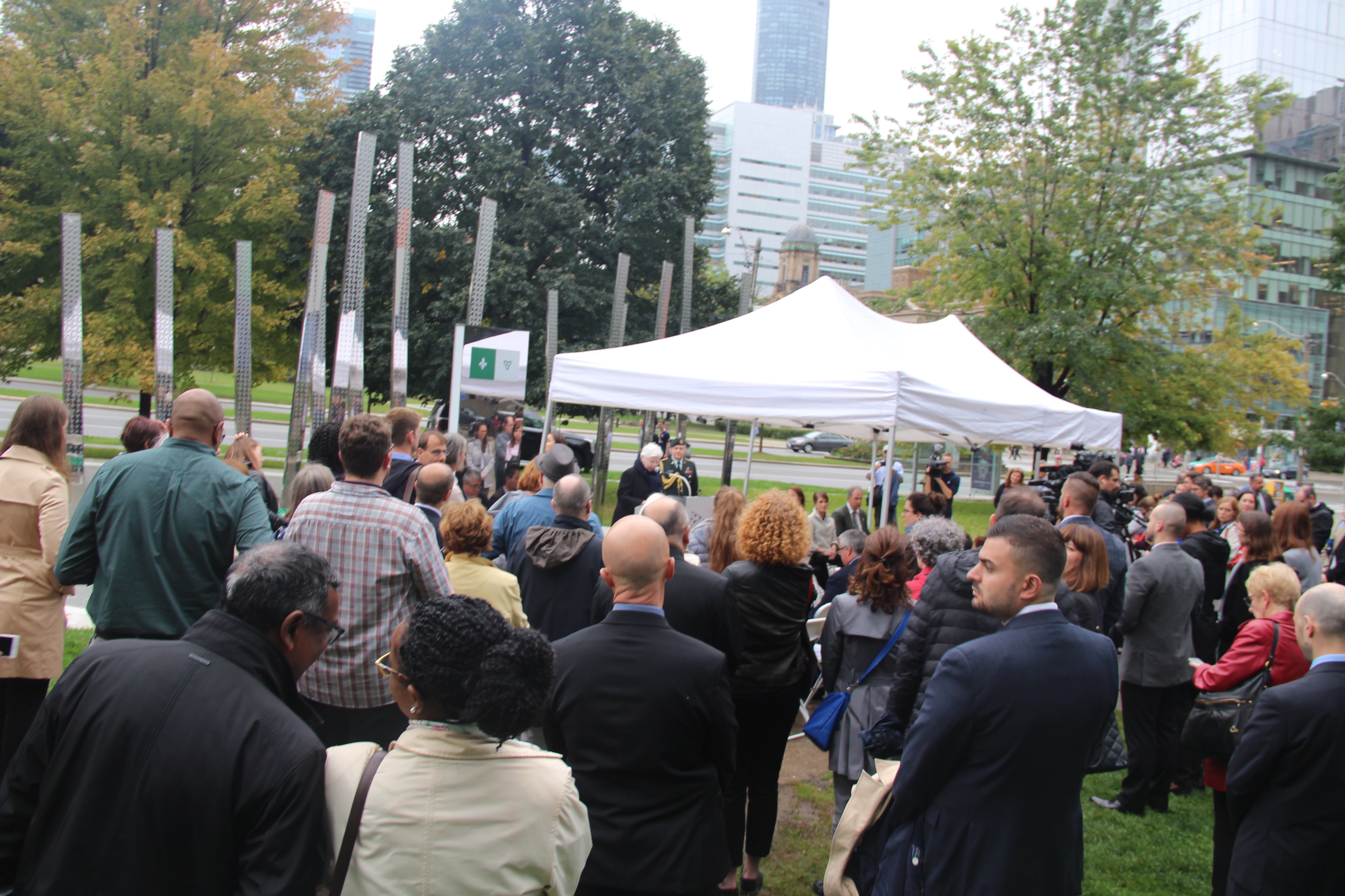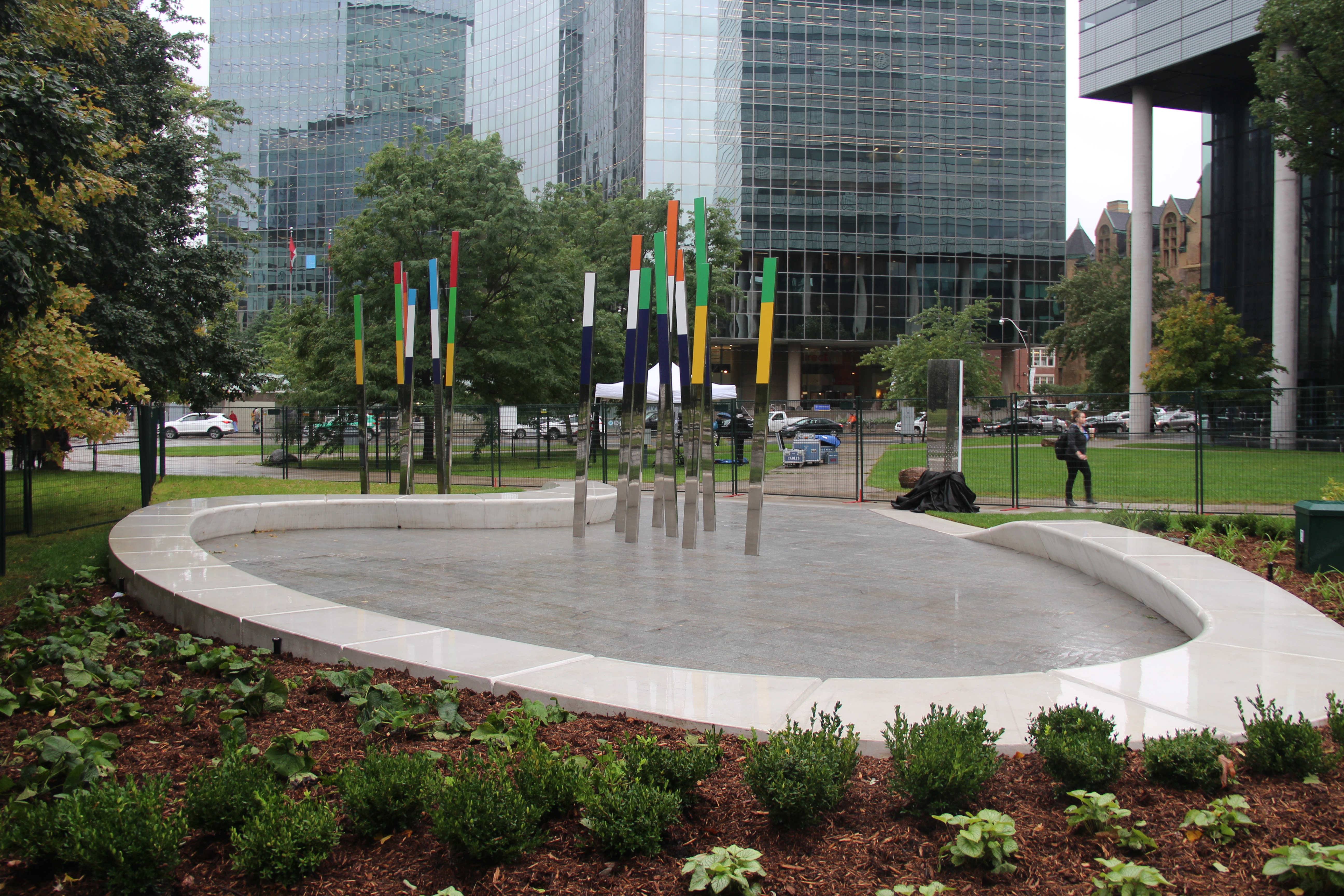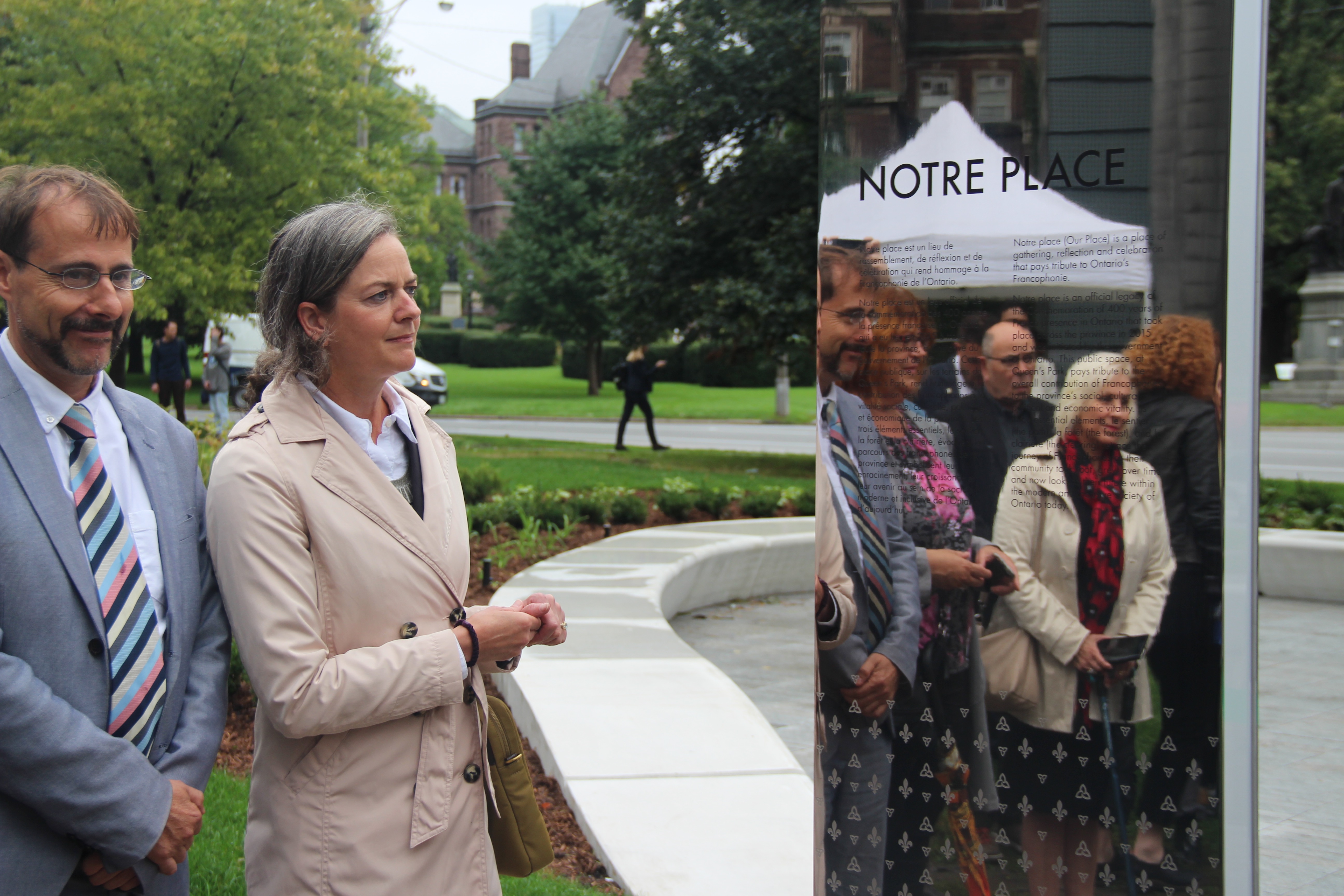 Évoquant l’hymne de Paul Demers et de François Dubé, la «clairière» en dallage gris, aux tiges d’acier inoxydable et au sentier de béton poli, avec sa plaque bilingue, «rend hommage aux francophones de l’Ontario et témoigne de l’apport considérable de la communauté francophone à la construction d’une province ontarienne forte et riche par son histoire», a déclaré le président de l’Assemblée de la francophonie de l’Ontario, Carol Jolin.