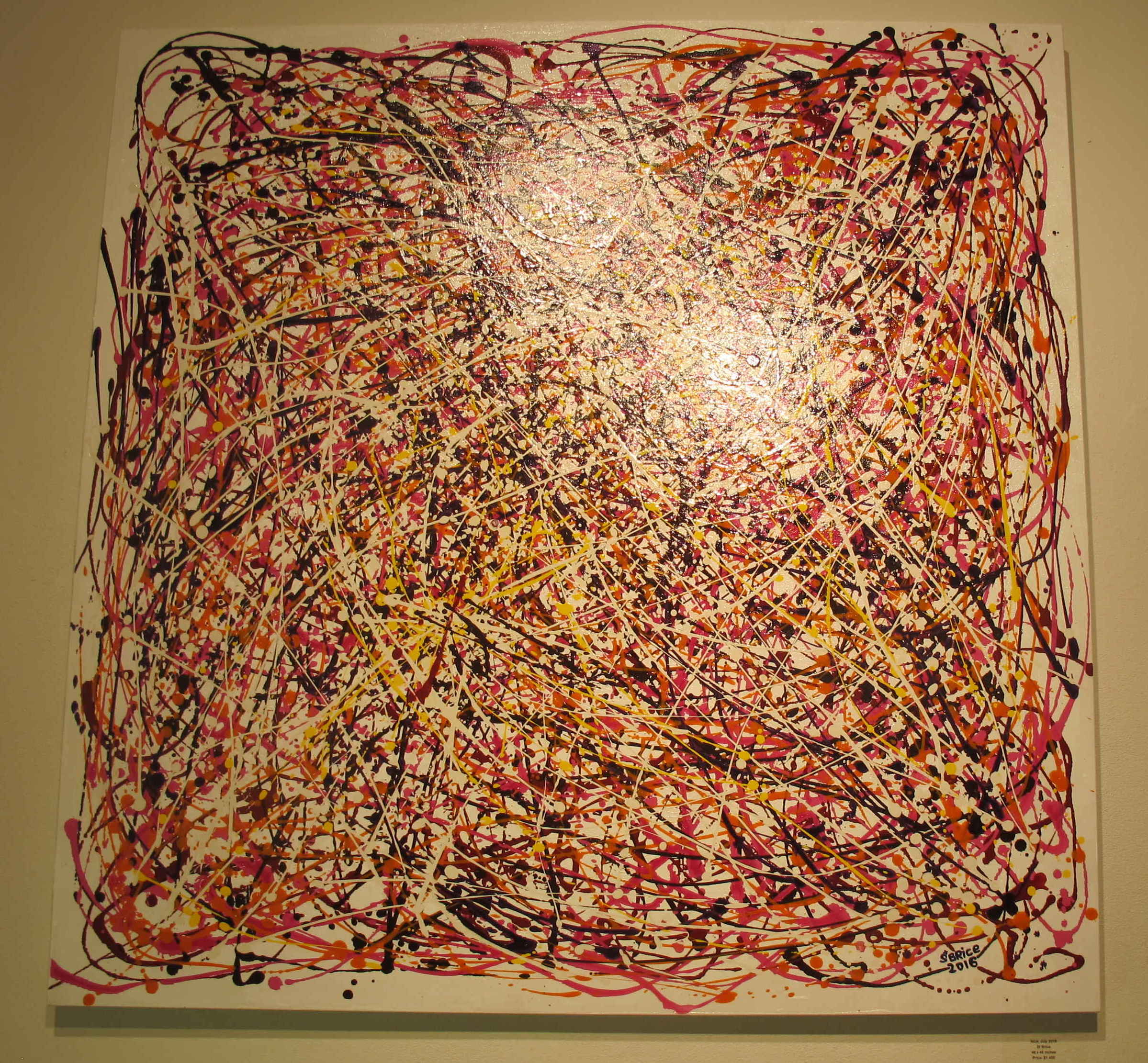 Christophe s’est découvert cette passion depuis déjà un long moment. La technique de la peinture «droppé» qu’il utilise fait en sorte que son pinceau ne touche jamais la toile. Une technique qu’il a apprise tout seul.