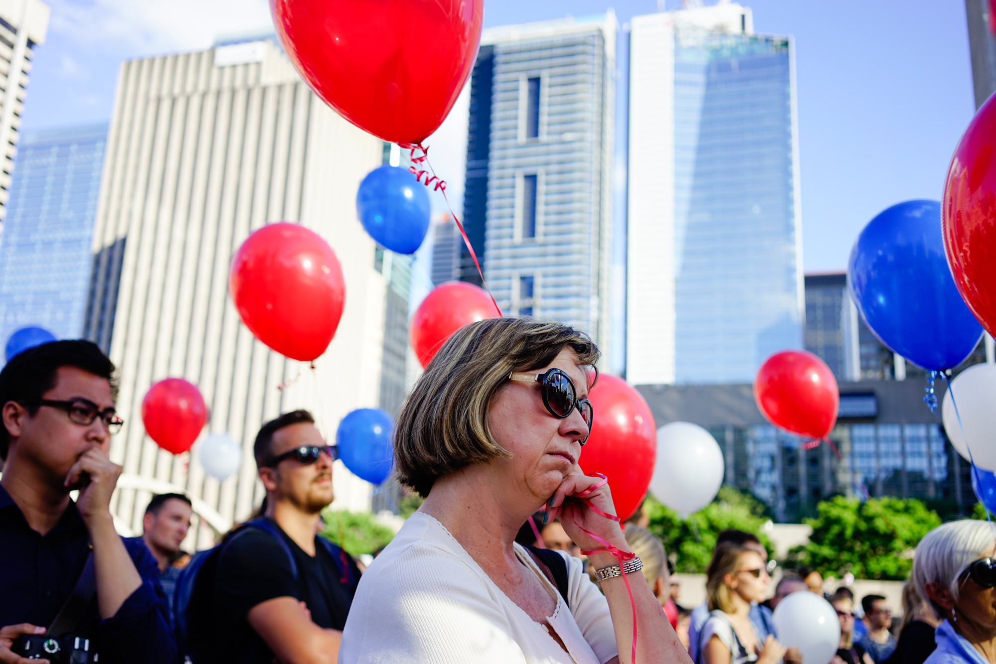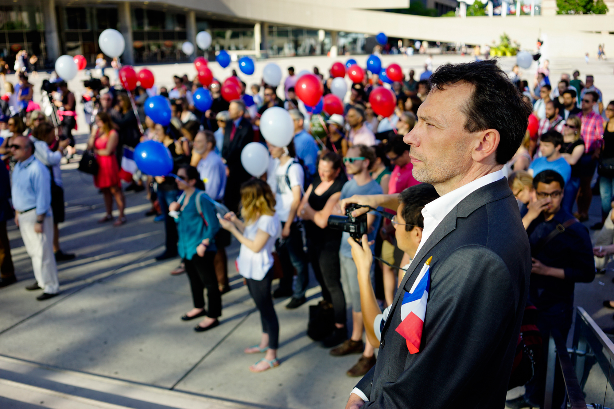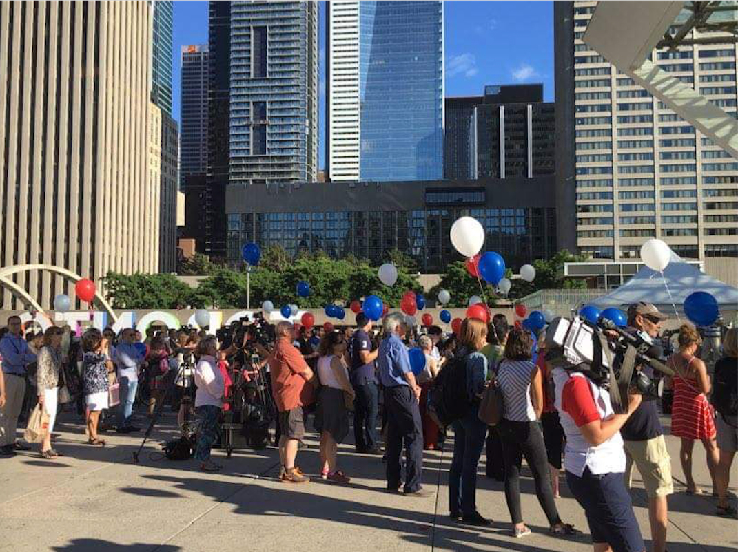 Une centaine de Torontois se sont rassemblés vendredi soir en face de l’Hôtel de Ville de Toronto pour manifester leur solidarité avec les Français après l’attentat du 14 juillet à Nice, où un camionneur a foncé dans la foule, tuant 84 personnes et faisant 202 blessés.
