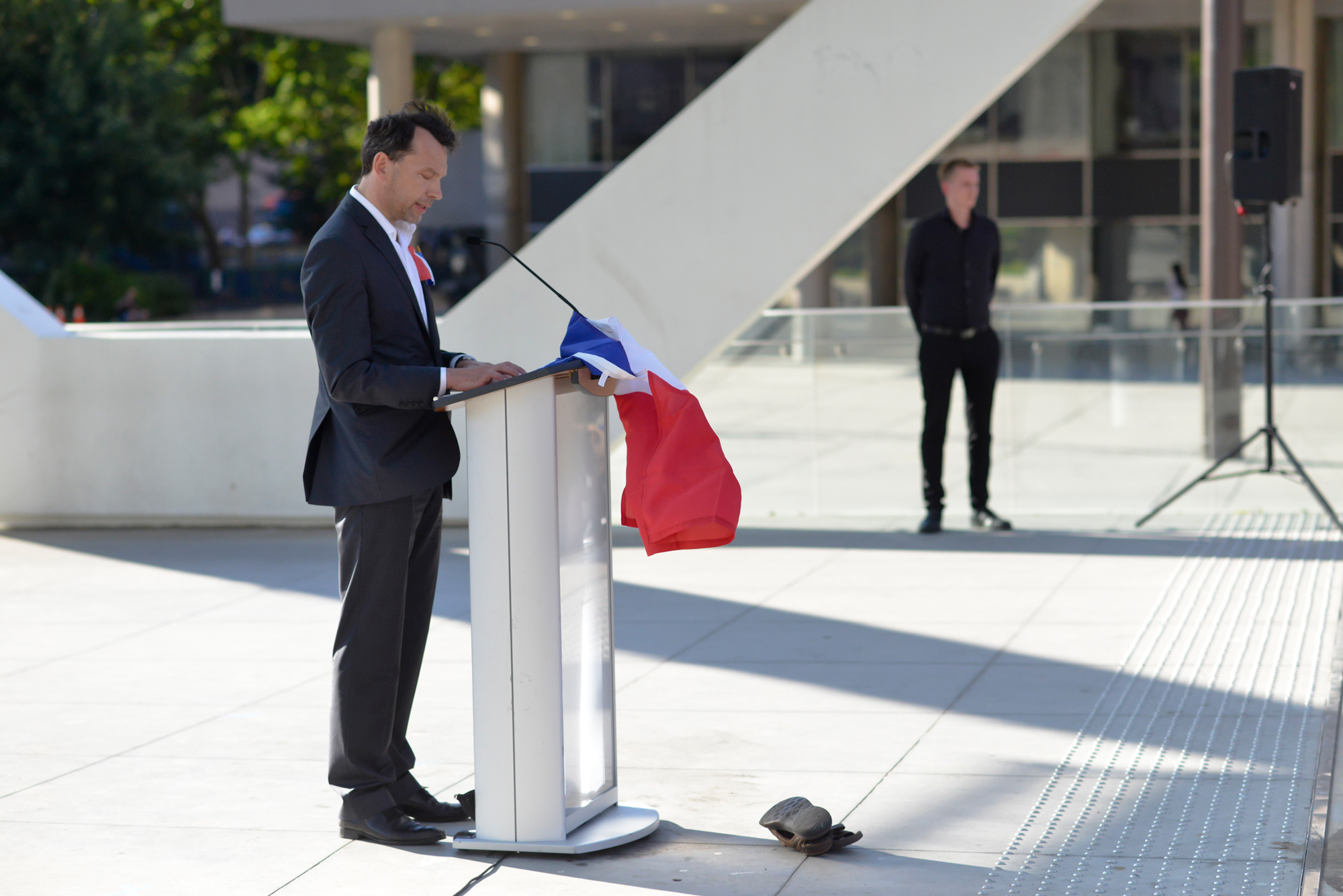 Ils ont chanté La Marseillaise et entendu le consul de France, Marc Trouyet, répéter pour la troisième fois en 18 mois – Charlie Hebdo, le Bataclan et maintenant la Promenade des Anglais à Nice – que le terrorisme ne fera que renforcer la détermination de la France et de ses alliés de protéger leurs valeurs communes.