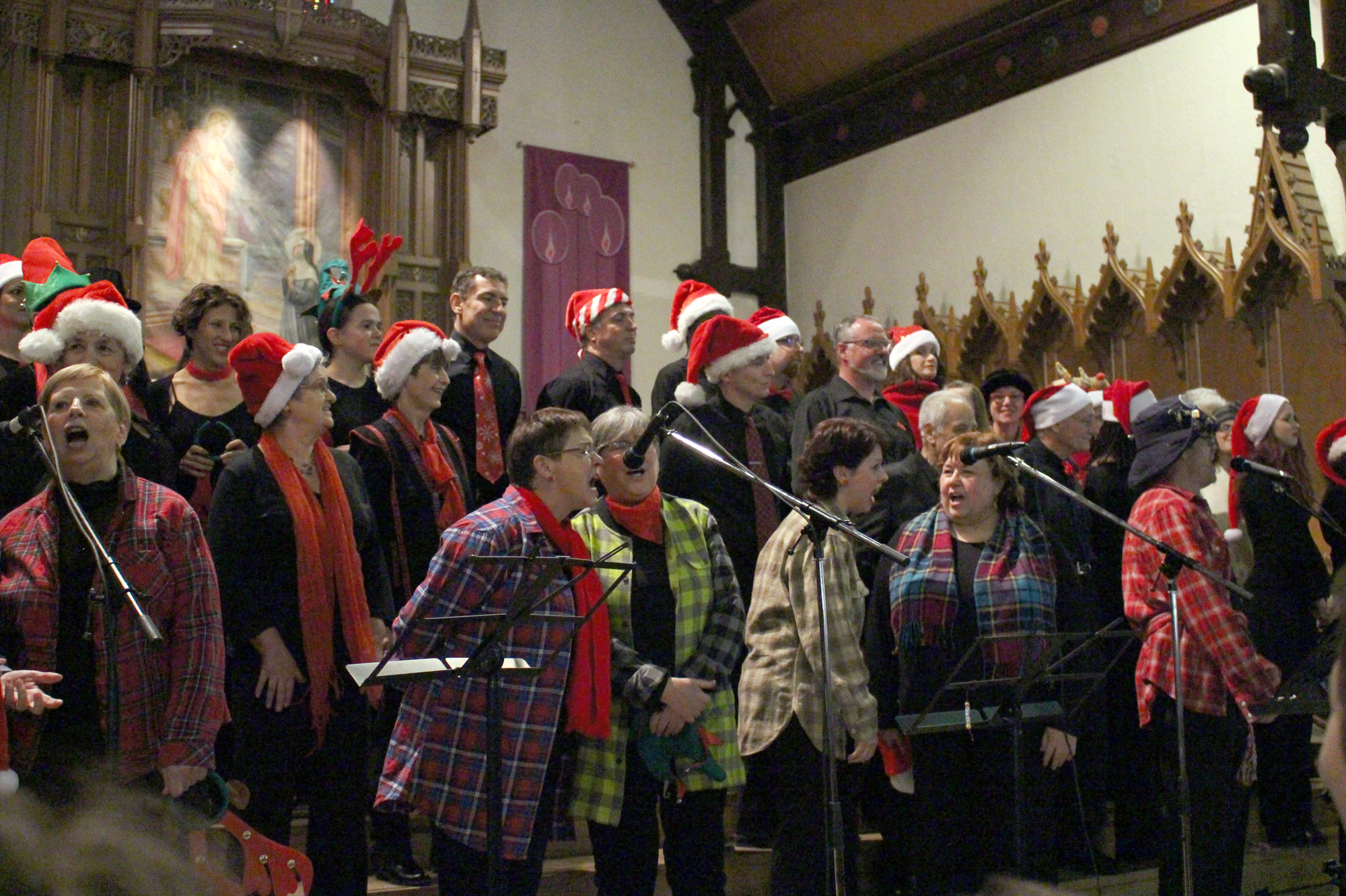 Spectacle de Noël mémorable samedi de l’Ensemble vocal Les Voix du coeur à l’église du Sacré-Coeur, bondée, au centre-ville. Les 45 chanteurs (incluant 10 nouvelles recrues), étaient menés de main de maître par Manon Côté. On en a profité pour rendre hommage au grand poète et chanteur Leonard Cohen, décédé cet automne, avec son Hallelujah, interprété par la voix d’ange de Lyne Landry. Un avant-goût prometteur de leur grand spectacle annuel sur le thème du bonheur, qui aura lieu le 27 mai.