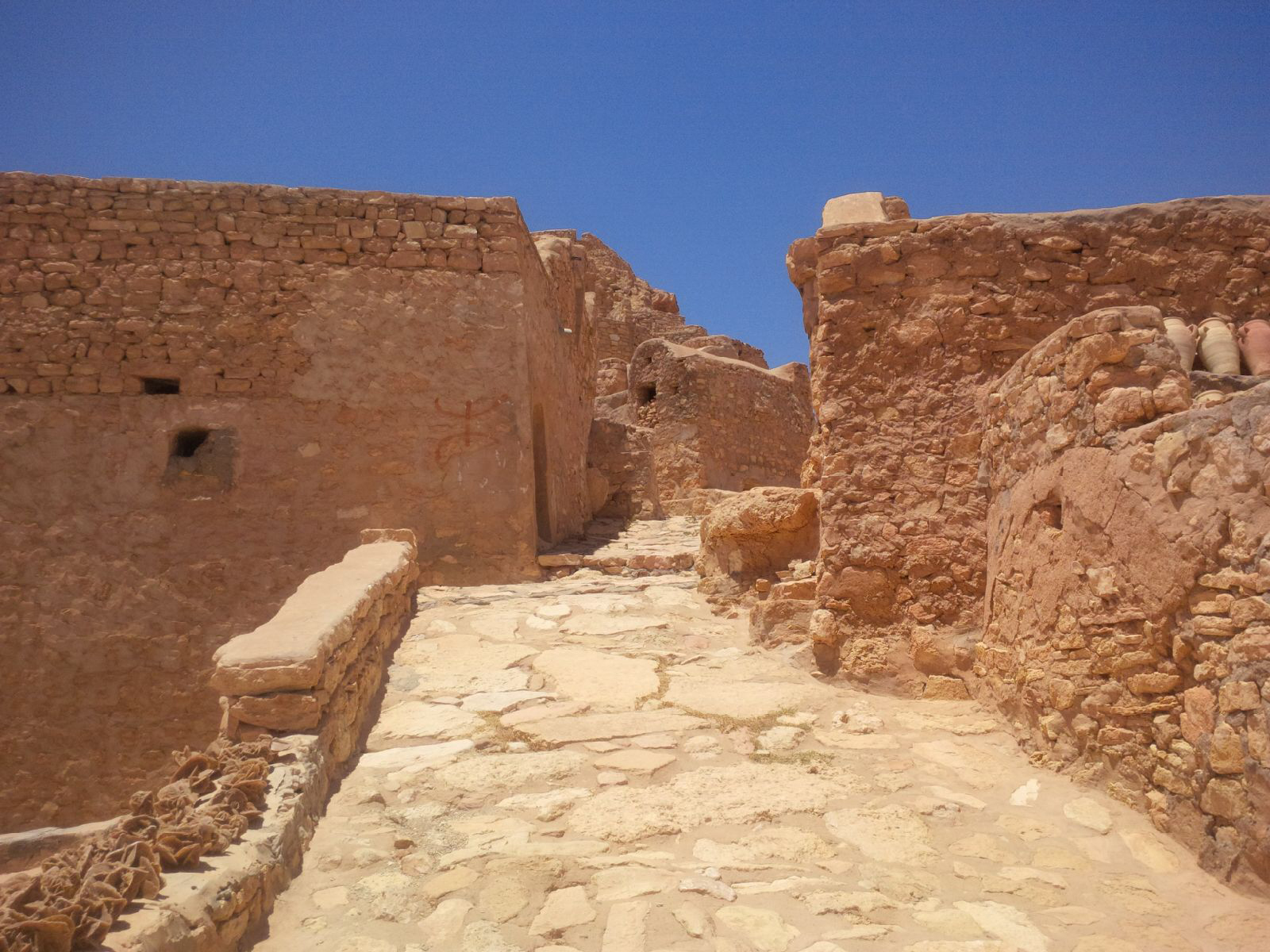 Au cœur de ces vagues rouges, ondoyantes sous le soleil, se cachent des villages troglodytes berbères datant du XIe siècle. Ils sont nombreux, ces petits villages disparaissant dans le décor. Appelés ksars, ils sont les greniers des Berbères.